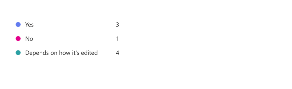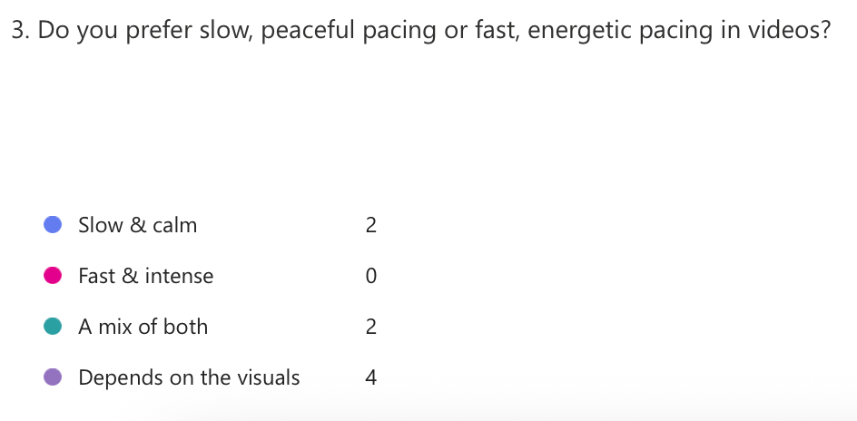These questions have been really informative and helpful to let me know what my audience wants as the most important thing is that the video is enjoyable. I have learned thing like how I need to add sceens as people want them and that some of the scene I have already planned, people want to see that which reasures me that I’m making something that people want to watch. Overall, This has been a very helpful piece of reaserch for the video.
